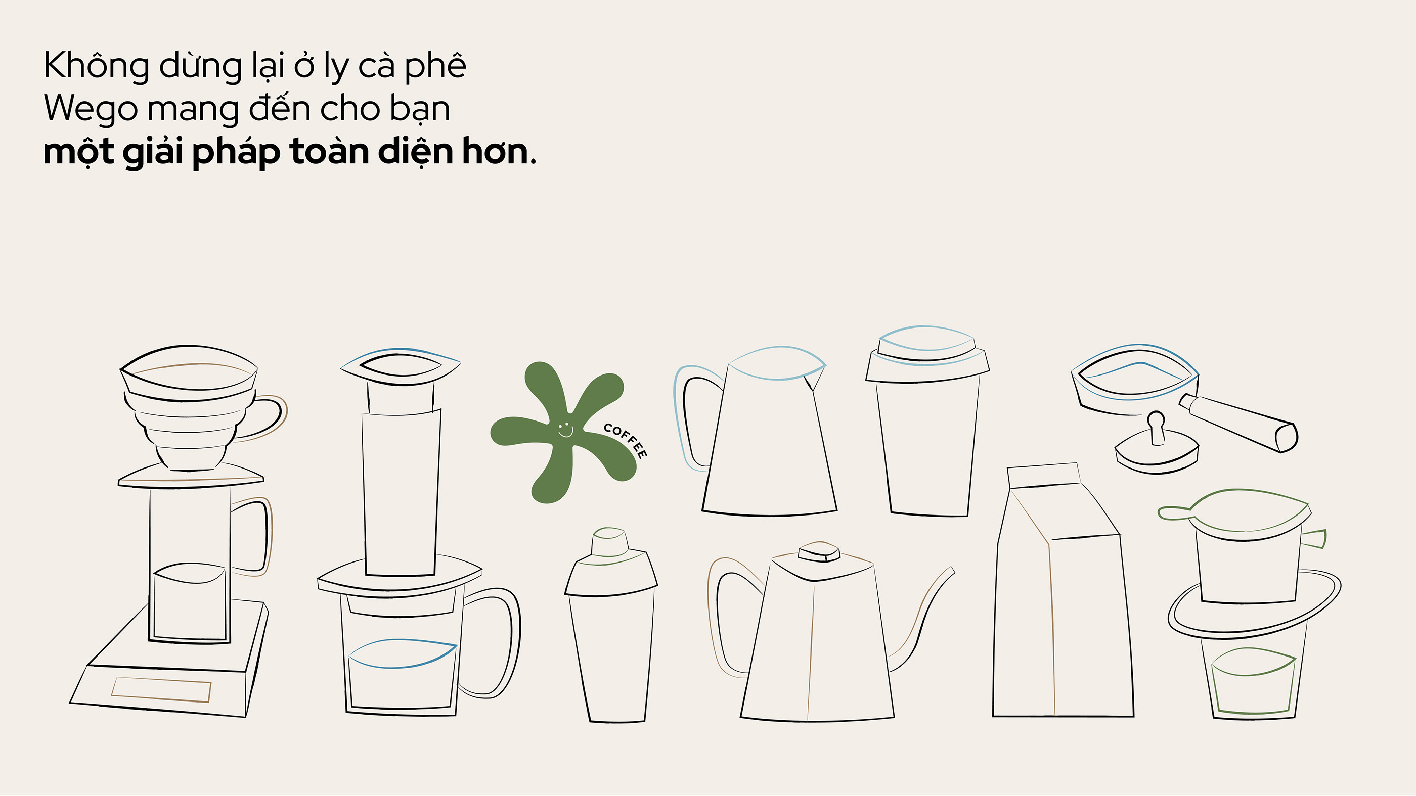 Wego là sự kết hợp giữa cà phê và công nghệ, mang đến phong cách sống hiện đại cho khách hàng. Với thiết kế tinh tế và nguyên liệu chọn lọc nhằm mang lại trải nghiệm độc đáo, Wego mong muốn trở thành điểm nhấn cho một ngày của bạn thêm phần trọn vẹn.